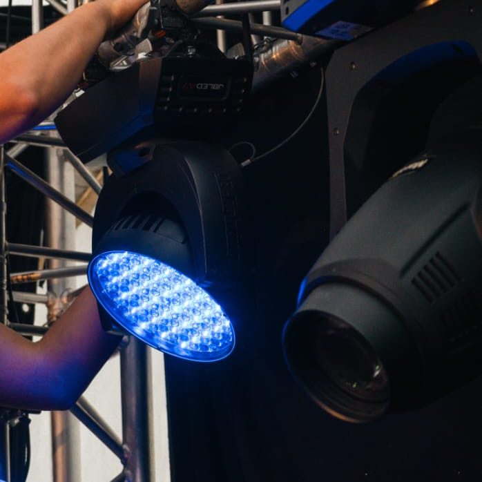 Zusätzlich kümmern wir uns um die Lichttechnik, die essenziell für die Stimmung und Atmosphäre Ihrer Veranstaltung ist. Mit modernster Lichttechnik setzen wir gezielt Akzente und bringen Ihre Bühne zum Strahlen.