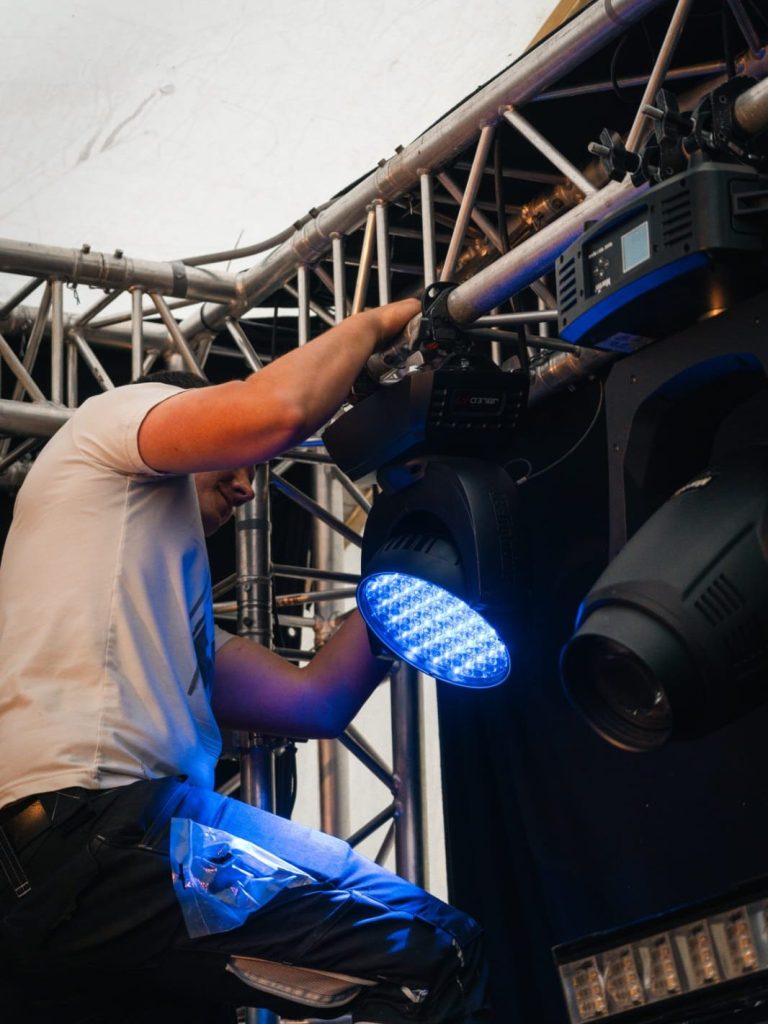 Zusätzlich kümmern wir uns um die Lichttechnik, die essenziell für die Stimmung und Atmosphäre Ihrer Veranstaltung ist. Mit modernster Lichttechnik setzen wir gezielt Akzente und bringen Ihre Bühne zum Strahlen.